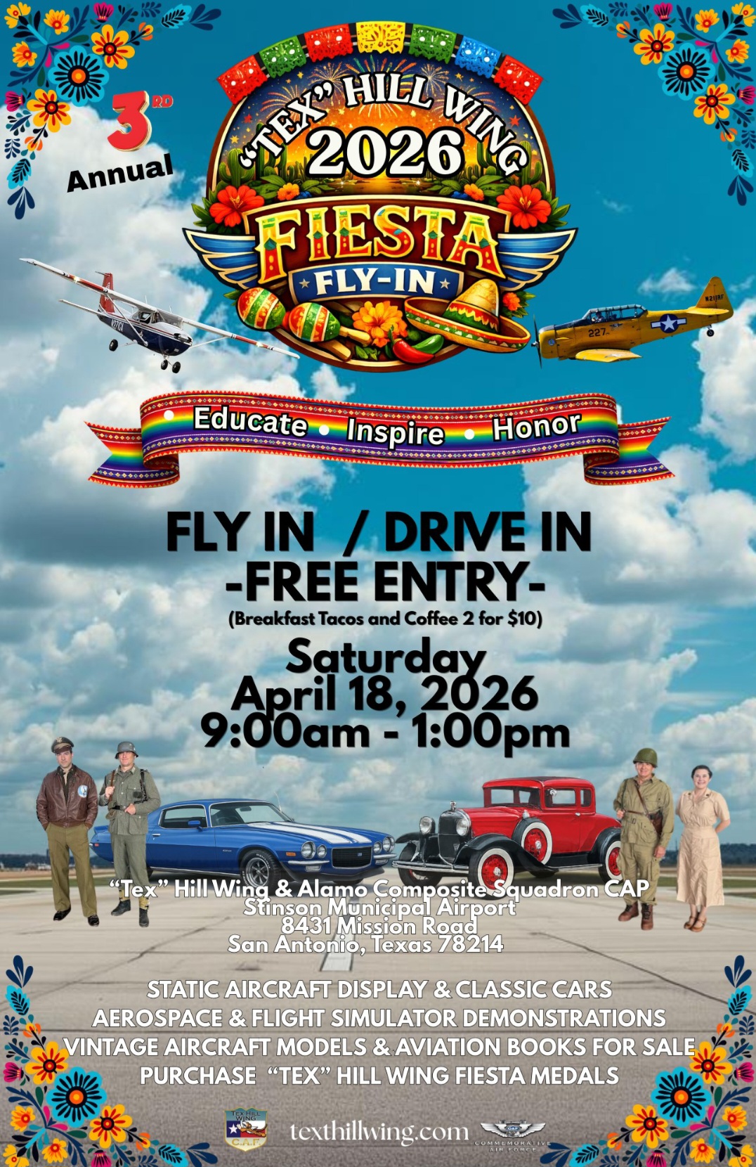 Check out the 2026 “Tex” Hill Wing Fiesta Fly-In at Stinson Municipal Airport in San Antonio! 🇺🇸
